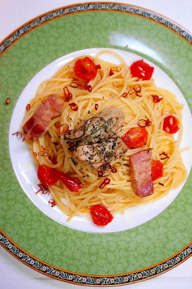 旬 牡蠣とベーコンのアヒージョパスタ レシピ 作り方 By s4 クックパッド